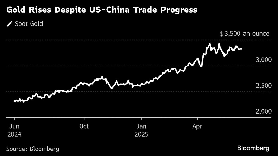 Bloomberg, Harga emas terus menguat meski AS dan China menyatakan mereka telah menyepakati rencana untuk meredakan ketegangan perdagangan setelah mengadakan perundingan di London.