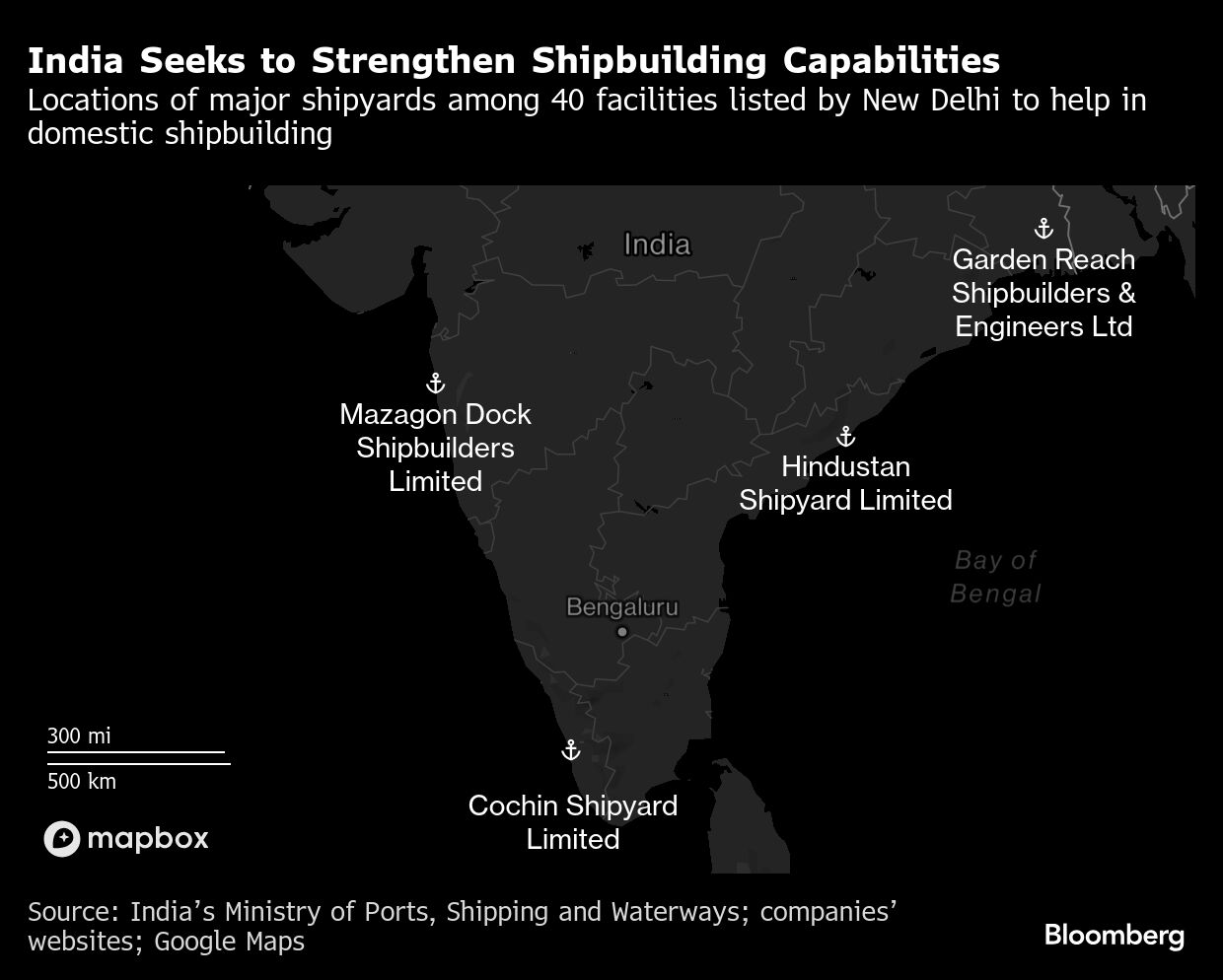 Saat ini India memiliki setidaknya 40 galangan kapal, namun hanya empat di antaranya yang mampu membangun kapal berukuran lebih besar dari tanker kelas menengah.