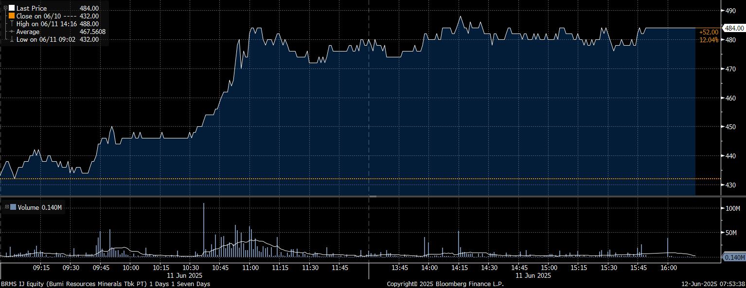 - PT Bumi Resources Minerals Tbk (BRMS) Rp335,12 miliar
