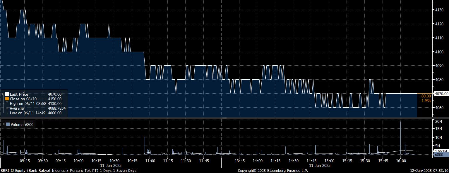 Sedang, investor asing net sell yang besar pada saham PT Bank Rakyat Indonesia Tbk (BBRI) mencapai Rp330,23 miliar. Imbas tekanan jual yang deras, saham BBRI melemah 1,93% dan ditutup di posisi Rp4.070/saham.