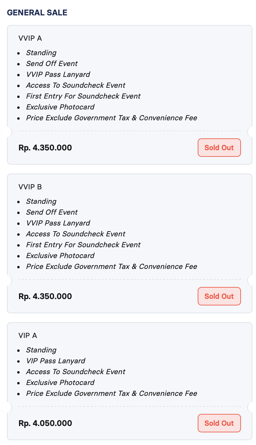 - VVIP (Send off dan Sound Check) : Rp4.350.000