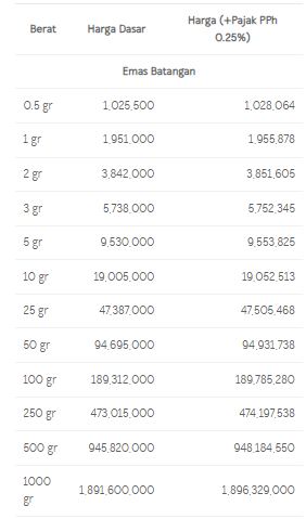 Berikut daftar harga emas Logam Mulia Antam selengkapnya: