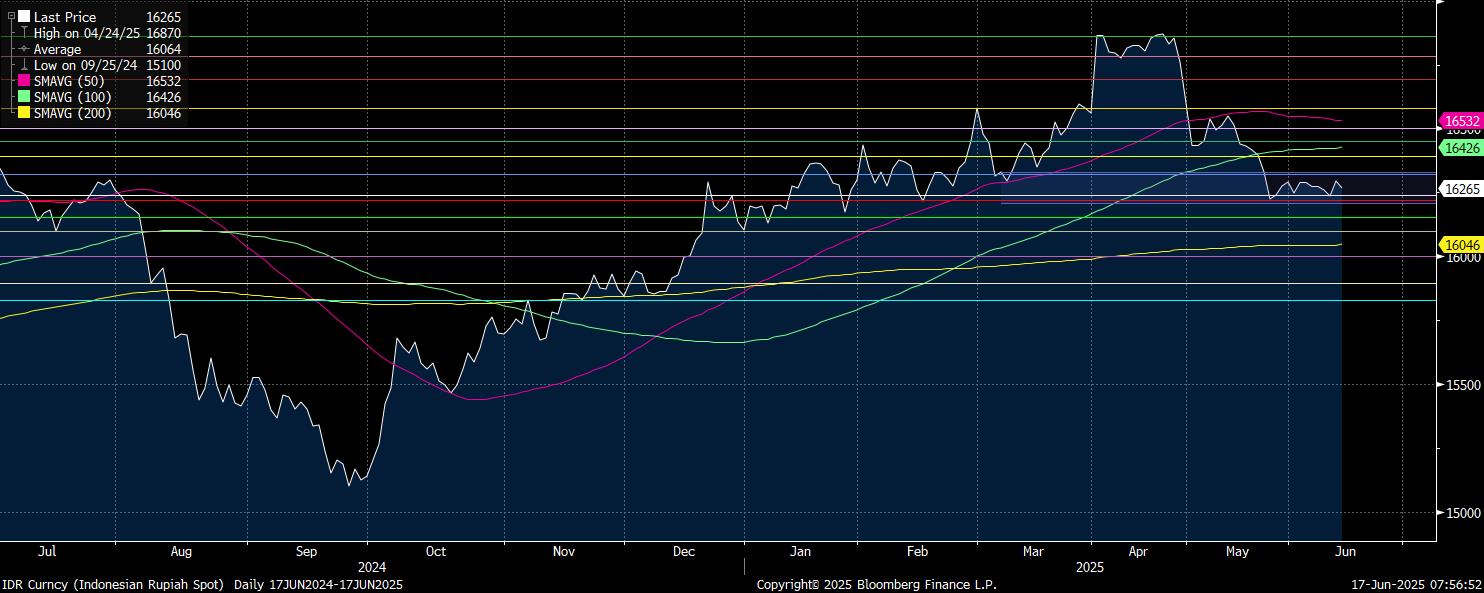 Level tersebut masih cukup jauh dengan posisi penutupan rupiah spot kemarin di Rp16.265/US$ mengisyaratkan masih ada potensi pelemahan. Namun, asa de-eskalasi Timteng mungkin akan mengikis sedikit sentimen risk-off dan memberi ruang pada rupiah dalam tataran terbatas.