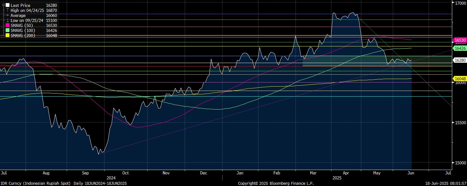 Level tersebut jauh dengan posisi penutupan rupiah spot kemarin di Rp16.280/US$, mengisyaratkan pelemahan kemungkinan melanda dengan rentang lebih luas.