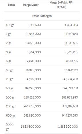 Berikut daftar harga emas Logam Mulia Antam selengkapnya hari ini: