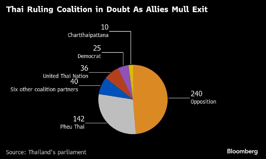 Tanpa Bhumjaithai, koalisi hanya memiliki mayoritas tipis sekitar 253 anggota parlemen, sedikit lebih dari setengah dari 493 anggota DPR. Hal ini berpotensi mempersulit pengesahan undang-undang penting pada Juli, termasuk RUU legalisasi kasino yang kontroversial dan anggaran fiskal berikutnya.