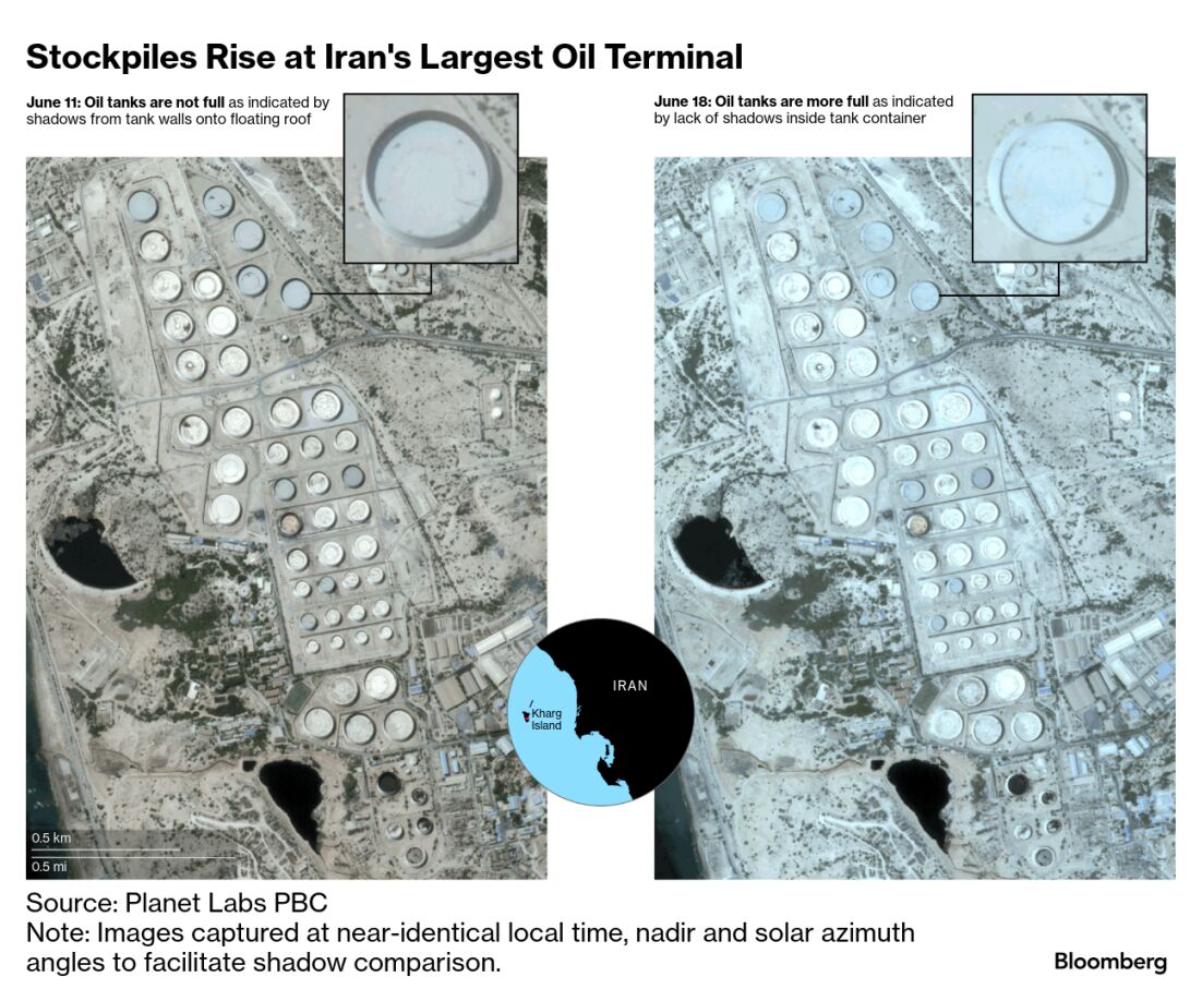 Meskipun terjadi lonjakan, tangki-tangki penyimpanan di terminal ekspor penting negara itu di Pulau Kharg dipenuhi dengan minyak mentah.