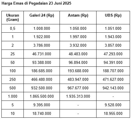 Lalu untuk emas batangan Galeri 24 ukuran 0,5 gram, Pegadaian menjual di harga Rp 1.008.000. Ini pun tidak ada perubahan.