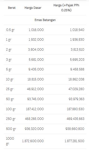 Berikut daftar harga emas Antam selengkapnya untuk hari ini: