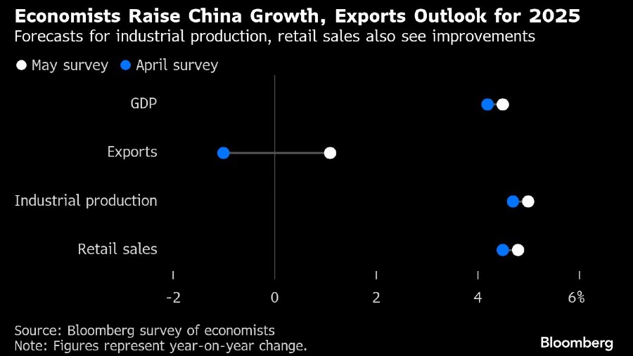 Meskipun gencatan tarif telah dinegosiasikan sebulan yang lalu dengan AS, pungutan Amerika masih berada di level tinggi, dengan kesepakatan yang lebih langgeng masih dipertanyakan. Para analis yang disurvei oleh Bloomberg memperkirakan pertumbuhan PDB akan turun menjadi 4,5% tahun ini, jauh di bawah target resmi sekitar 5%. Pertumbuhan ekonomi meningkat 5,4% pada kuartal pertama.