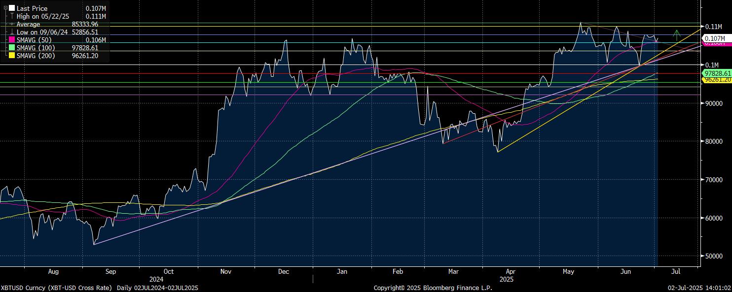 Sepanjang satu bulan di Juni, Bitcoin masih terus menguji resistance potensialnya hingga berhasil menyentuh US$110.570 yang sedikit lagi kembali pecah rekor. Namun memang, di sepanjang Juni Bitcoin hanya mampu melaju sideways di range harga US$100.000–US$108.000.