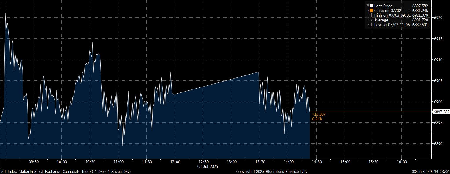 Bloomberg Technoz, Jakarta - Indeks Harga Saham Gabungan (IHSG) pada perdagangan Kamis (3/7/2025) berhasil bertahan di zona hijau dengan menguat 16,33 poin atau mencatat kenaikan 0,24% di posisi 6.897.