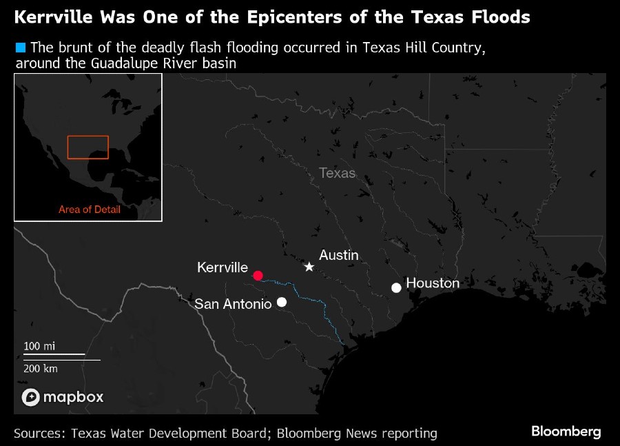 Sekitar 750 anak berada di Camp Mystic, sekitar137 km barat laut San Antonio, ketika banjir tiba-tiba melanda pada Jumat. Hill Country membentang melintasi seluruh atau sebagian dari 20 daerah lebih di Texas bagian tengah, di mana Austin dan San Antonio yang berkembang pesat di pinggiran timur wilayah tersebut bertransformasi dari lahan peternakan menjadi kawasan perkotaan.