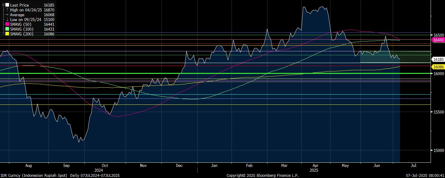 Rupiah memiliki potensi penguatan apabila mood pasar membaik pasca kepastian pemunduran jadwal pemberlakuan tarif AS yang memberi kesempatan bagi negara-negara untuk mencapai negosiasi dagang dengan Negeri Paman Sam.