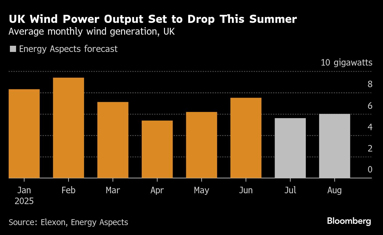 Kenaikan ini terjadi sebagai respons atas penurunan output pembangkit angin hingga 40% yang diperkirakan oleh Energy Aspects Ltd. untuk Juli dan Agustus.