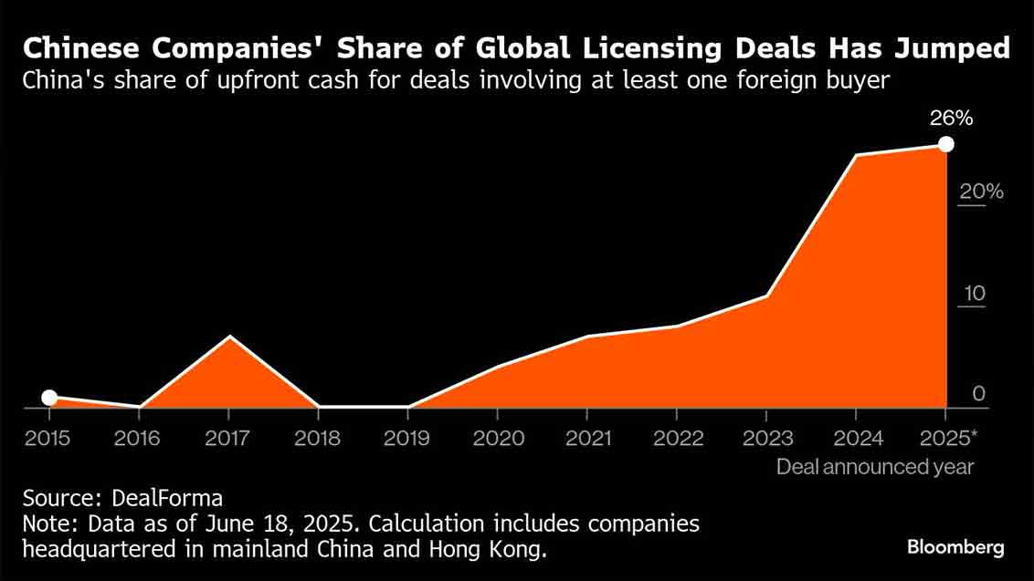 Menurut basis data kesepakatan biopharma DealForma, nilai dan frekuensi kesepakatan semacam ini terus meningkat, menandakan adanya keyakinan bahwa obat-obatan asal China mampu bersaing di pasar internasional dan dapat menghasilkan pendapatan yang besar.