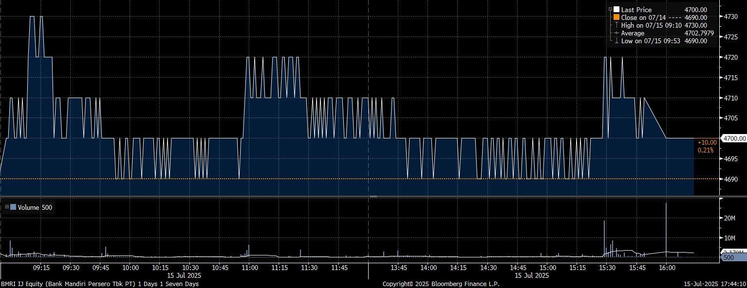 Bloomberg Technoz, Jakarta - Pada perdagangan saham kemarin, Selasa 15 Juli 2025, Indeks Harga Saham Gabungan (IHSG) berhasil ditutup di zona hijau dengan menguat 0,61% dan 43,32 poin hingga melesat di posisi 7.140,47. Lagi–lagi, investor asing masih di posisi jual.