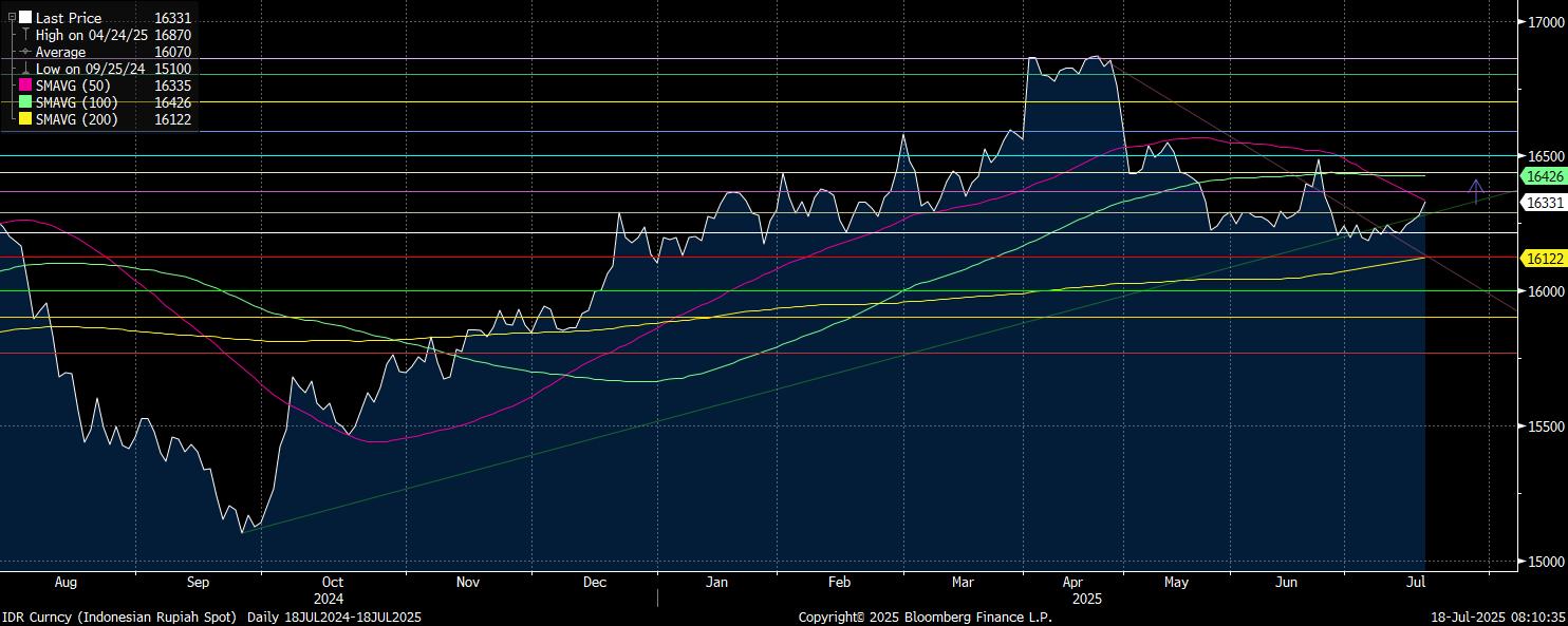Sementara trendline sebelumnya pada time frame daily menjadi resistance terdekat potensial pada level Rp16.300/US$. Kemudian, target penguatan lanjutan untuk kembali ke atas level Rp16.250/US$.