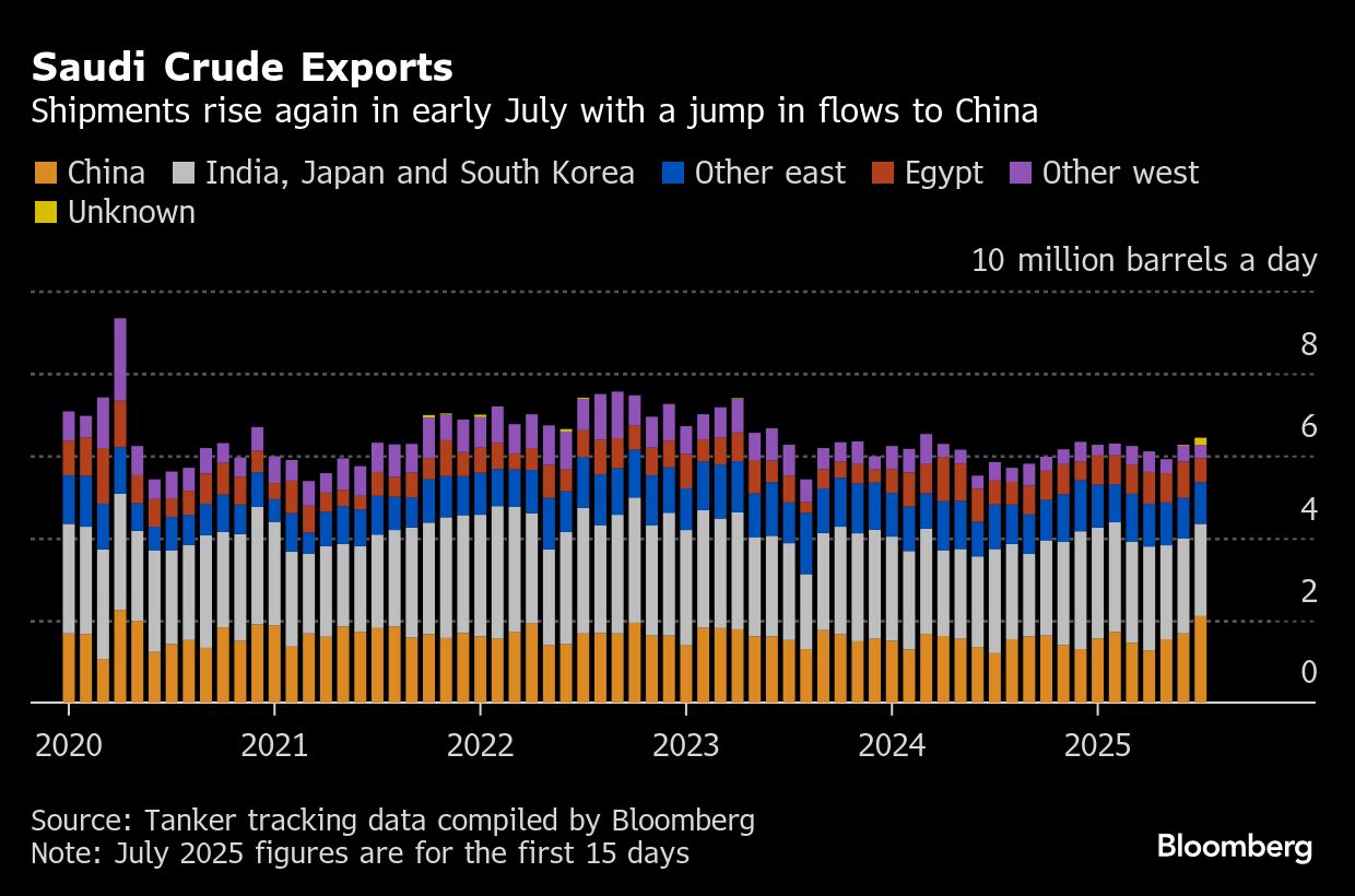 Aliran yang tinggi sejauh ini pada bulan Juli mungkin mencerminkan tahap terakhir pemindahan peningkatan produksi bulan Juni dari kerajaan ke terminal penyimpanan di luar kawasan.