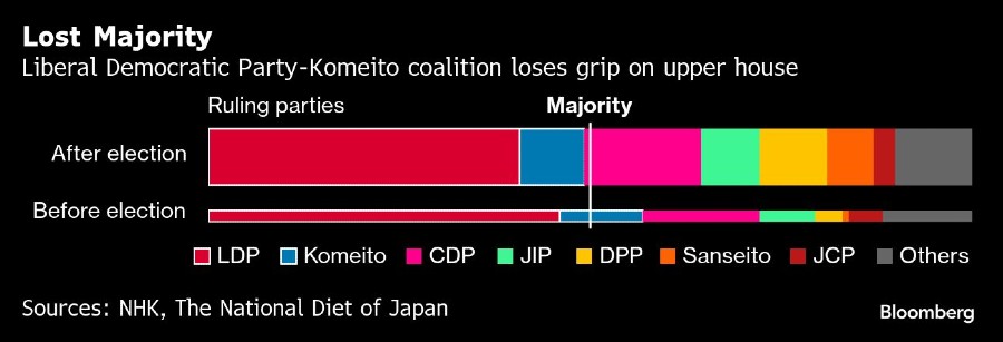 Selisih tipis di majelis tinggi mengancam akan semakin mengacaukan agenda kebijakan Ishiba, mempersulit perundingan dagang dengan AS, dan berpotensi membuatnya kehilangan jabatan. Tiga mantan PM dari LDP yang kehilangan kendali di majelis tinggi mengundurkan diri dalam waktu dua bulan, termasuk Shinzo Abe pada 2007 saat masa jabatan pertamanya sebagai PM.