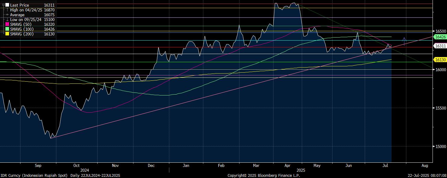 Secara teknikal nilai rupiah memiliki potensi pelemahan mencermati berbagai sentimen hingga wait and see pasar. Pelemahan terdekat menuju level Rp16.350/US$ yang merupakan support pertama dengan target pelemahan kedua akan tertahan di Rp16.400/US$.