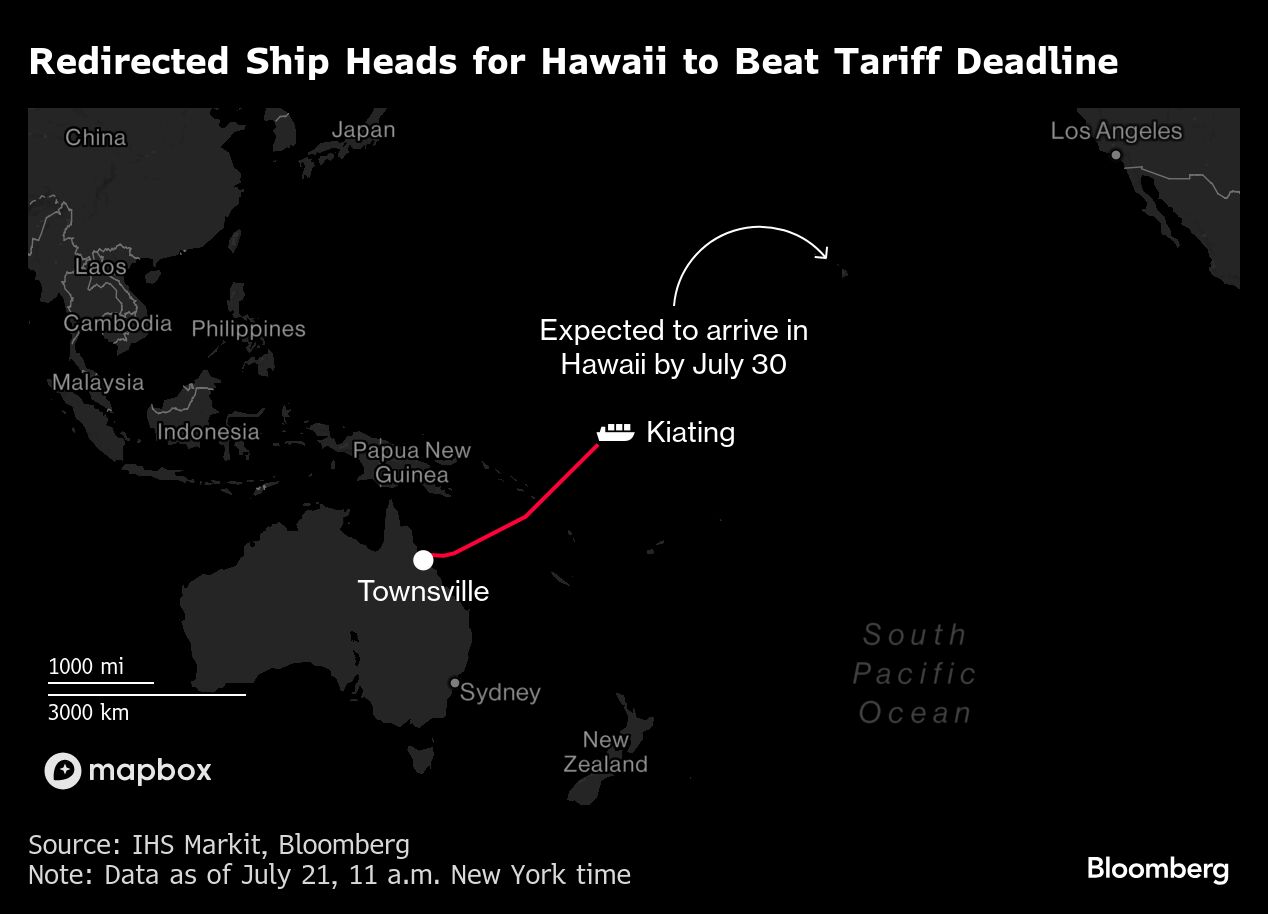 Data pelabuhan menunjukkan bahwa Kiating awalnya dijadwalkan mendarat di New Orleans, tetapi mengubah tujuannya ke Hawaii setelah pengumuman Trump — sehingga memangkas kemungkinan waktu pelayarannya hampir 20 hari.