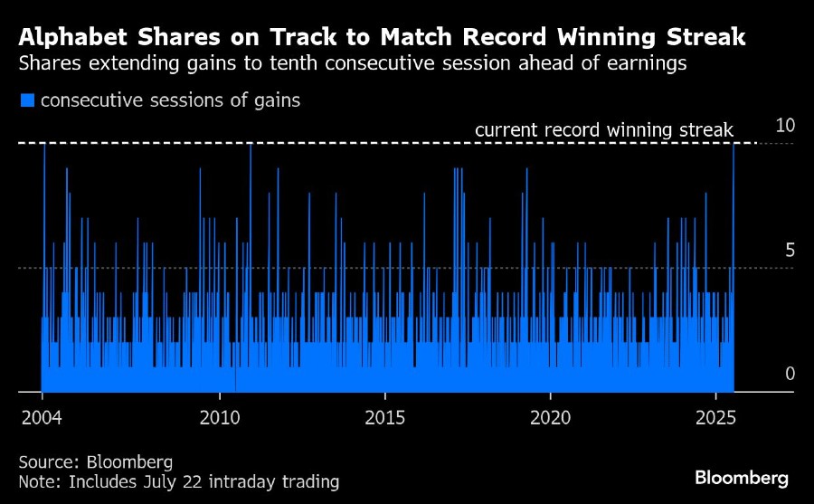 Untuk kuartal kedua, Alphabet diperkirakan akan meraih laba bersih US$2,18/saham atas pendapatan hampir US$80 miliar, dalam laporannya, menurut data yang dikumpulkan oleh Bloomberg. Hal ini menunjukkan peningkatan masing-masing sebesar 15% dan 12% dibandingkan periode yang sama tahun lalu. Pertumbuhan tersebut diperkirakan akan terus berlanjut, dengan penjualan tahunan diproyeksikan akan meningkat dengan kecepatan yang sama hingga 2028.