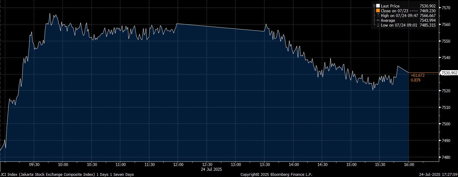 Bloomberg Technoz, Jakarta - Indeks Harga Saham Gabungan (IHSG) pada perdagangan kemarin Kamis (24/7/2025) ditutup di zona hijau. IHSG menguat 0,83% hingga melesat di posisi 7.530,9. Lantas bagaimana dan apa saja rekomendasi saham hari ini?