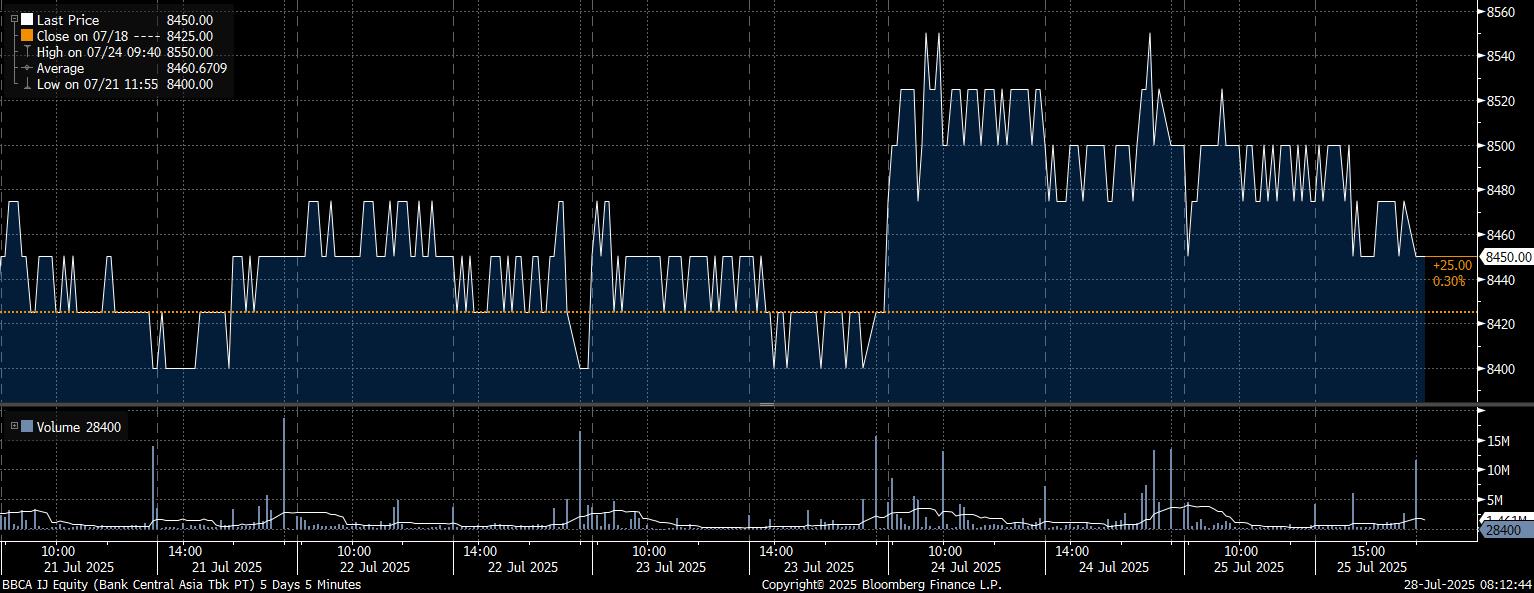 Berikut 5 saham dengan angka net buy tertinggi oleh investor asing sepanjang perdagangan sepekan 21 – 25 Juli 2025: