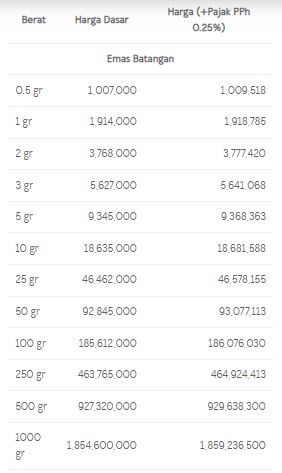 Berikut daftar harga emas Logam Mulia Antam selengkapnya untuk hari ini: