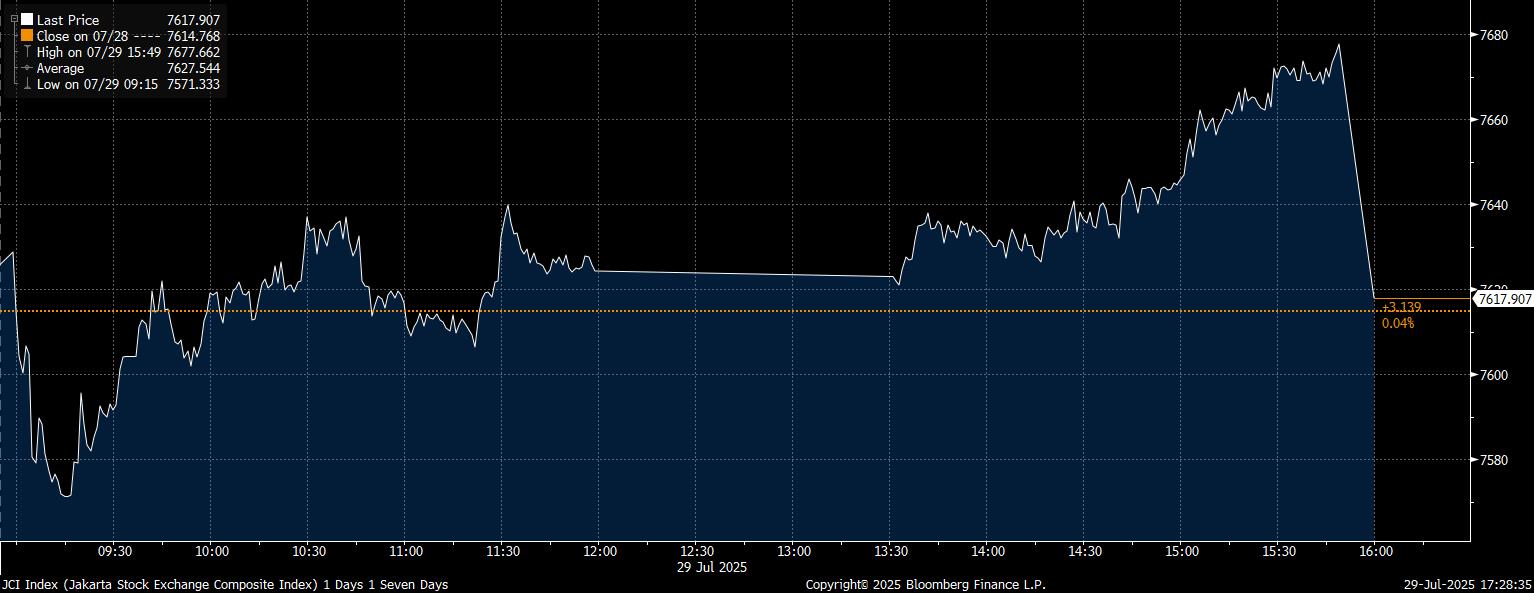 Pada Selasa (29/7/2025), IHSG menutup hari di posisi 7.617,9. Menguat 0,04% dan 3,13 poin dibandingkan dengan penutupan hari sebelumnya.