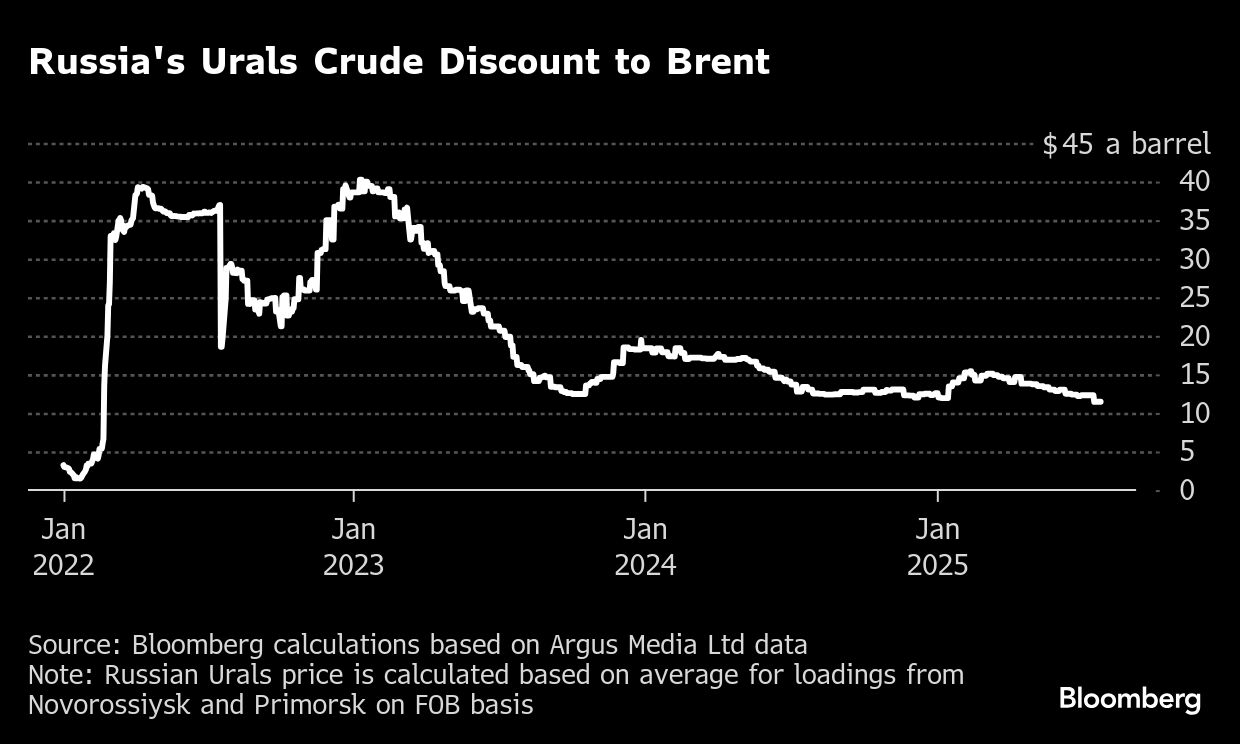 Diskon tersebut telah menyempit bahkan setelah Uni Eropa (UE) mengumumkan apa yang disebut oleh diplomat tertinggi blok tersebut, Kaja Kallas, sebagai paket sanksi "salah satu yang terkuat" terhadap Rusia awal bulan ini.