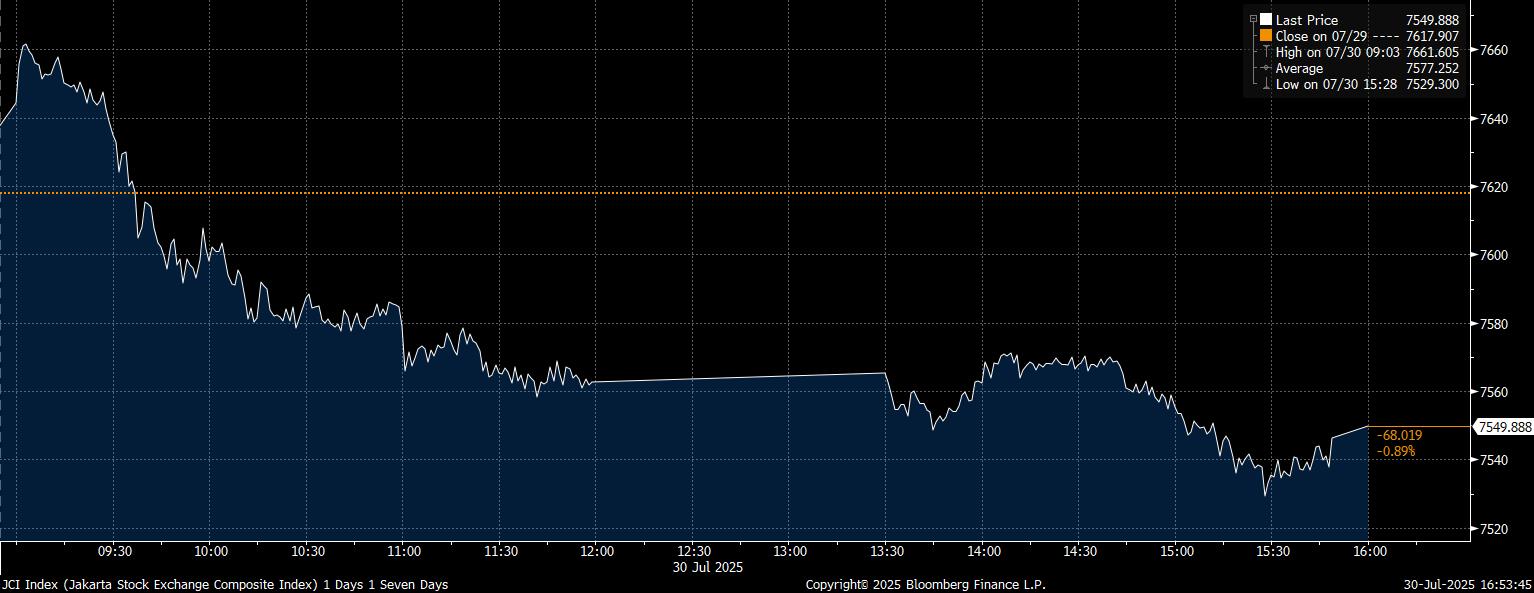 Pada Rabu (30/7/2025) di tutup perdagangan, IHSG ada di posisi 7.549,88 dengan pelemahan 0,89% dan 68,01 poin dibanding dengan hari sebelumnya.