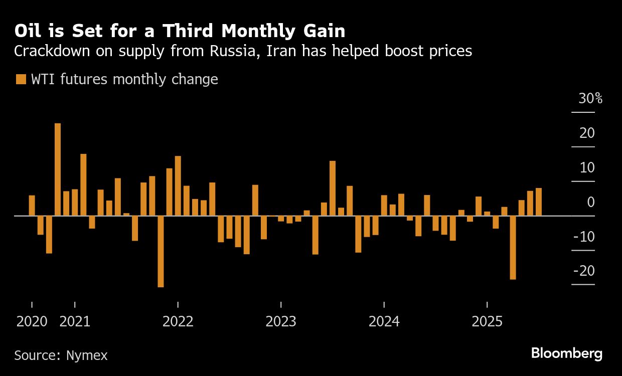 Di sisi lain, AS memberlakukan sanksi paling luas terkait Iran dalam tujuh tahun terakhir. Kebijakan terhadap Teheran dan India ini memicu kekhawatiran akan pengetatan pasokan minyak global dan dampaknya terhadap produk turunan seperti solar. Sejauh ini, harga minyak berada di jalur kenaikan bulanan terbesar sejak September 2023.