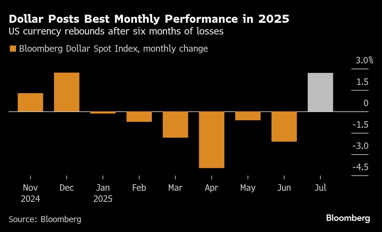 Dollar Index (yang mencerminkan posisi greenback di hadapan 6 mata uang utama dunia) menguat 2,7% sepanjang Juli. Ini menjadi pertumbuhan positif perdana pada 2025.