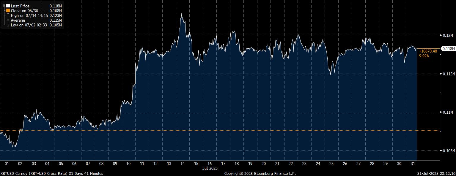 Di sisi lain, Bitcoin cukup memuaskan dengan menguat 9% pada Juli.