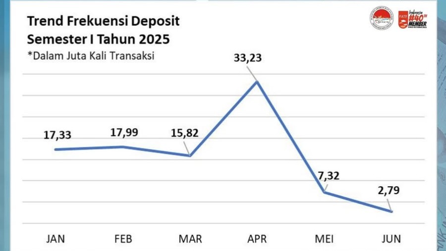 Ia menerangkan bahwa sepanjang periode April hingga Juni tahun ini frekuensi transaksi deposit judol turun drastis pasca kebijakan pembekuan rekening terindikasi judi online.