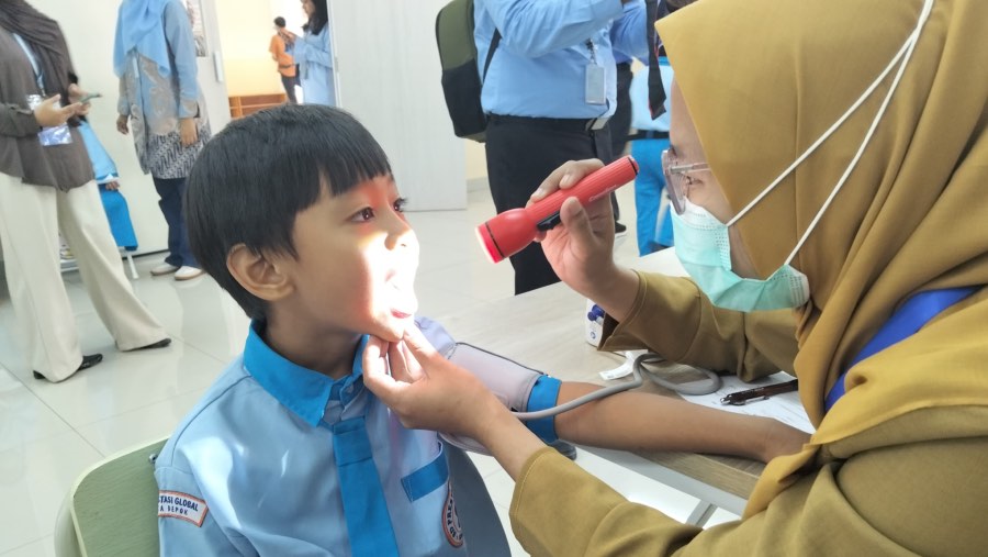 Di kesempatan sama, Kepala Sekolah Prestasi Global Depok, Mustopa menuturkan peserta cek kesehatan gratis (CKG) diikuti 843 siswa.