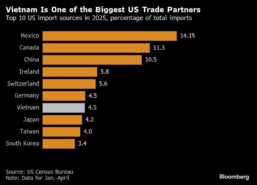 Ekspor neto ke AS menyumbang sekitar seperlima dari produk domestik bruto (PDB) Vietnam. Tarif tersebut mengancam pabrik-pabrik yang berkembang pesat karena perusahaan-perusahaan mendiversifikasi rantai pasokan mereka dari China.