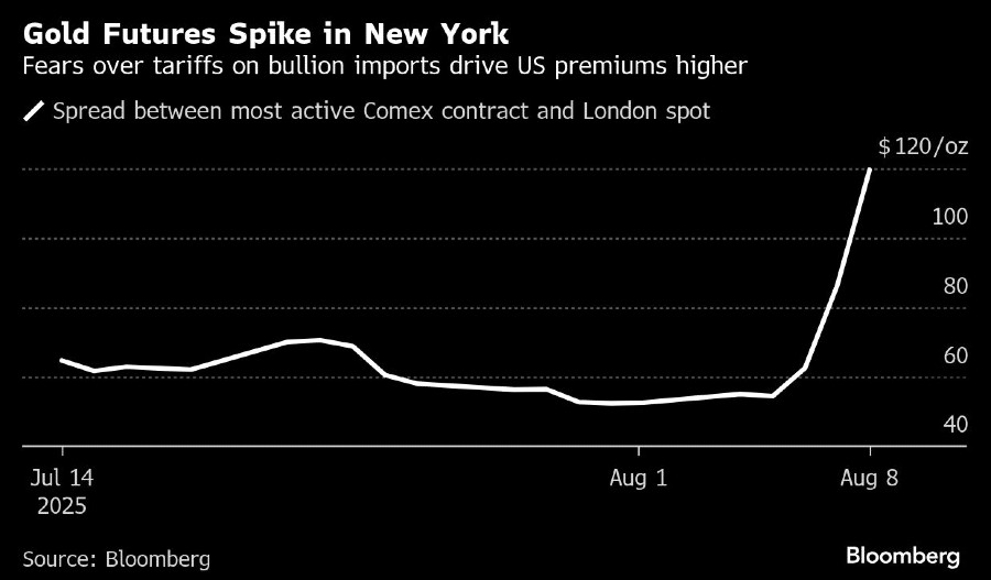 Kabar ini memicu lonjakan premi untuk emas berjangka di New York dibandingkan dengan harga spot di London saat pasar Asia dibuka pada Jumat. Kontrak untuk pengiriman Desember melonjak hingga premi lebih dari US$100 per ons di atas patokan global harga spot di London. Harga emas berjangka di New York juga melonjak ke rekor tertinggi.