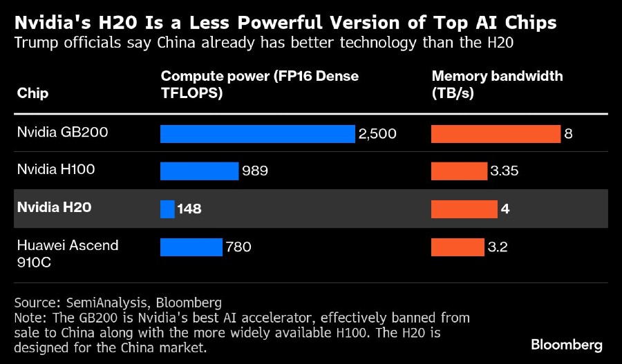 Presiden Donald Trump menyebut cip H20 "usang," mengatakan China "sudah memilikinya dalam bentuk yang berbeda." Ucapan ini sejalan dengan pernyataan dari para pejabat pemerintahannya, yang membela keputusan untuk melanjutkan ekspor H20 dengan alasan Huawei sudah memproduksi cip yang setara dengan H20.