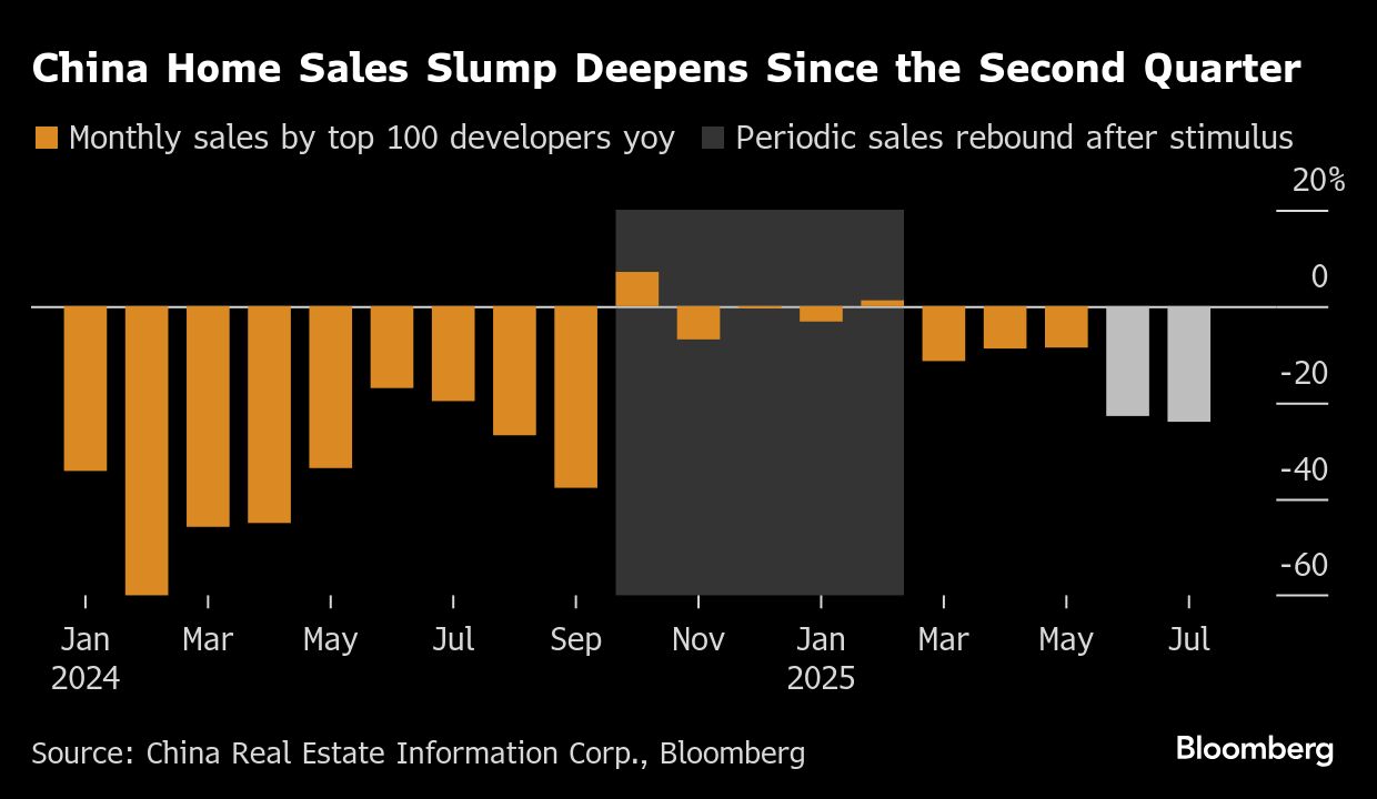 Meski pemerintah telah meluncurkan stimulus, penjualan properti tetap lesu tahun ini. UBS Group AG bahkan menunda proyeksi pemulihan pasar hingga pertengahan atau akhir 2026. Data China Real Estate Information Corp menunjukkan penjualan rumah baru oleh 100 pengembang terbesar turun lebih dari 20% selama dua bulan berturut-turut.