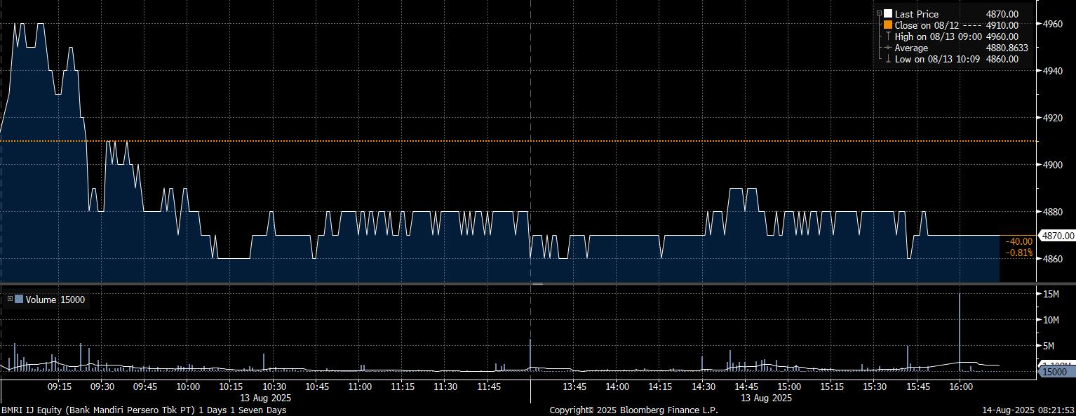 Sedang pada kesempatan yang sama, investor asing net sell yang besar pada saham PT Bank Mandiri Tbk (BMRI) mencapai Rp193,13 miliar. Imbas tekanan jual, saham BMRI melemah 0,81% di posisi Rp4.870/saham.