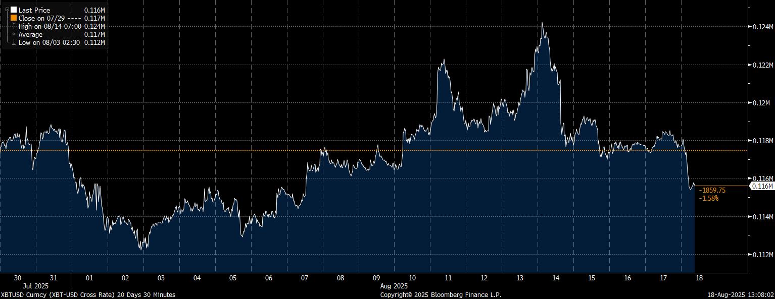 Bloomberg Technoz, Jakarta - Aset Bitcoin pada Senin (18/8/2025) turun dari singgasana harga paling puncaknya sepanjang sejarah (All Time High/ ATH), namun tetap berhasil bertahan pada kisaran US$115.000.