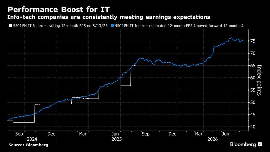 Ada berbagai sinyal bahwa momentum ini akan terus berlanjut seiring percepatan adopsi AI di berbagai segmen, termasuk komputasi awan (cloud) dan kendaraan listrik (EV). Estimasi rata-rata laba 12 bulan ke depan untuk saham teknologi negara berkembang telah meningkat 15% sejak awal tahun, dibandingkan dengan 6% untuk saham negara berkembang secara keseluruhan.