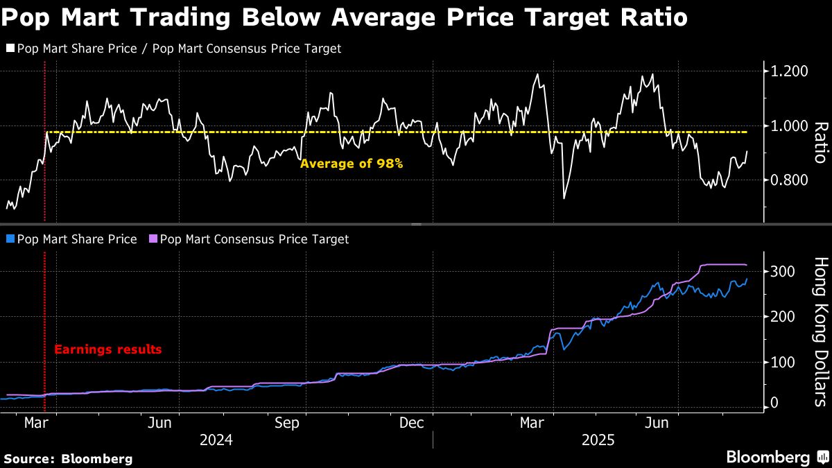 Saham Pop Mart telah melonjak lebih dari 1.000% sejak perusahaan mengumumkan hasil positif pada Maret 2024. Saat ini, saham tersebut diperdagangkan di bawah rasio rata-rata harga terhadap target yang dimiliki sejak saat itu.