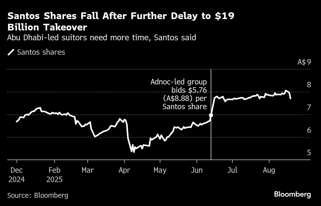 Penundaan ini menambah ketidakpastian atas transaksi yang diumumkan sejak Juni, yang juga menghadapi tantangan regulasi karena aset Santos tersebar di Australia, Papua Nugini, dan Amerika Serikat (AS), setelah periode uji tuntas diperpanjang pekan lalu.
