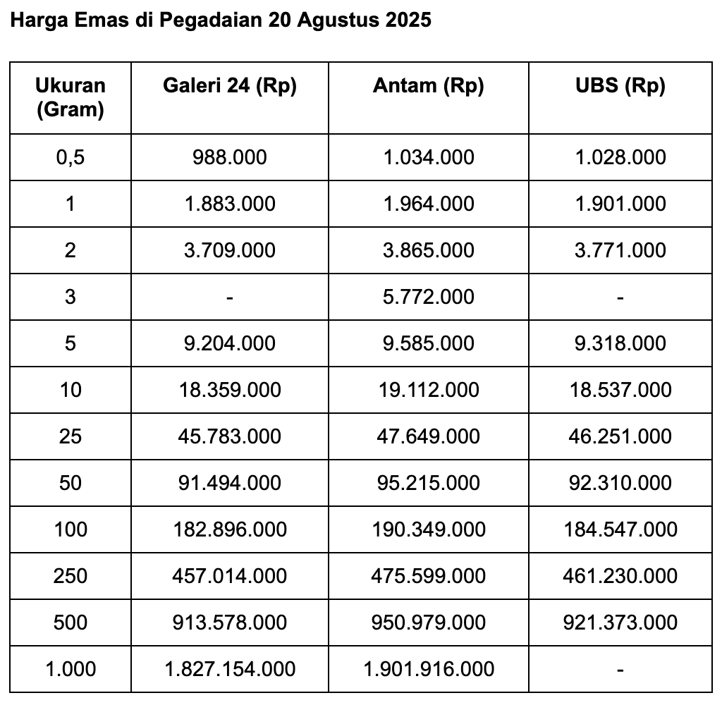 Pegadaian adalah salah satu anak usaha PT Bank Rakyat Indonesia (Persero) Tbk (BBRI). Berikut perkembangan harga emas di Pegadaian selengkapnya, seperti dilansir situs Sahabat Pegadaian: