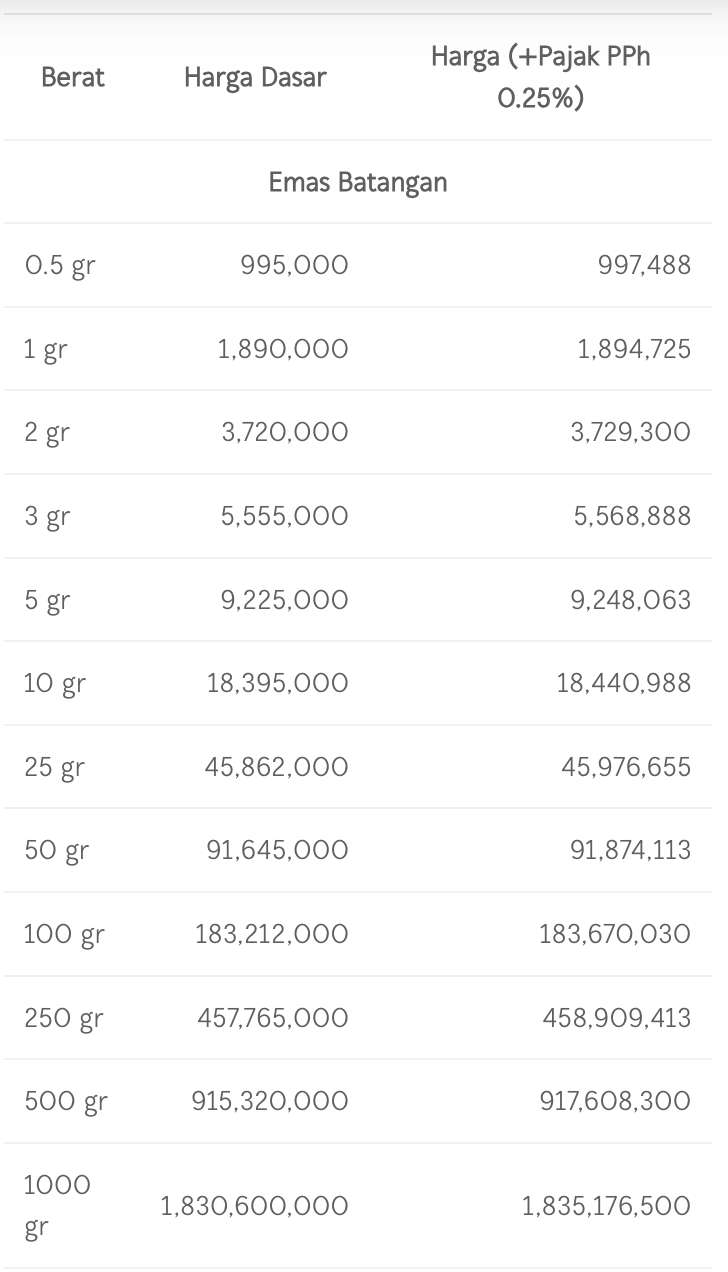 Berikut harga emas Logam Mulia Antam selengkapnya untuk hari ini: