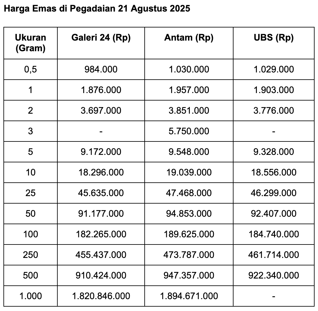 Pegadaian adalah salah satu anak usaha PT Bank Rakyat Indonesia (Persero) Tbk (BBRI). Berikut perkembangan harga emas di Pegadaian selengkapnya, seperti dilansir situs Sahabat Pegadaian: